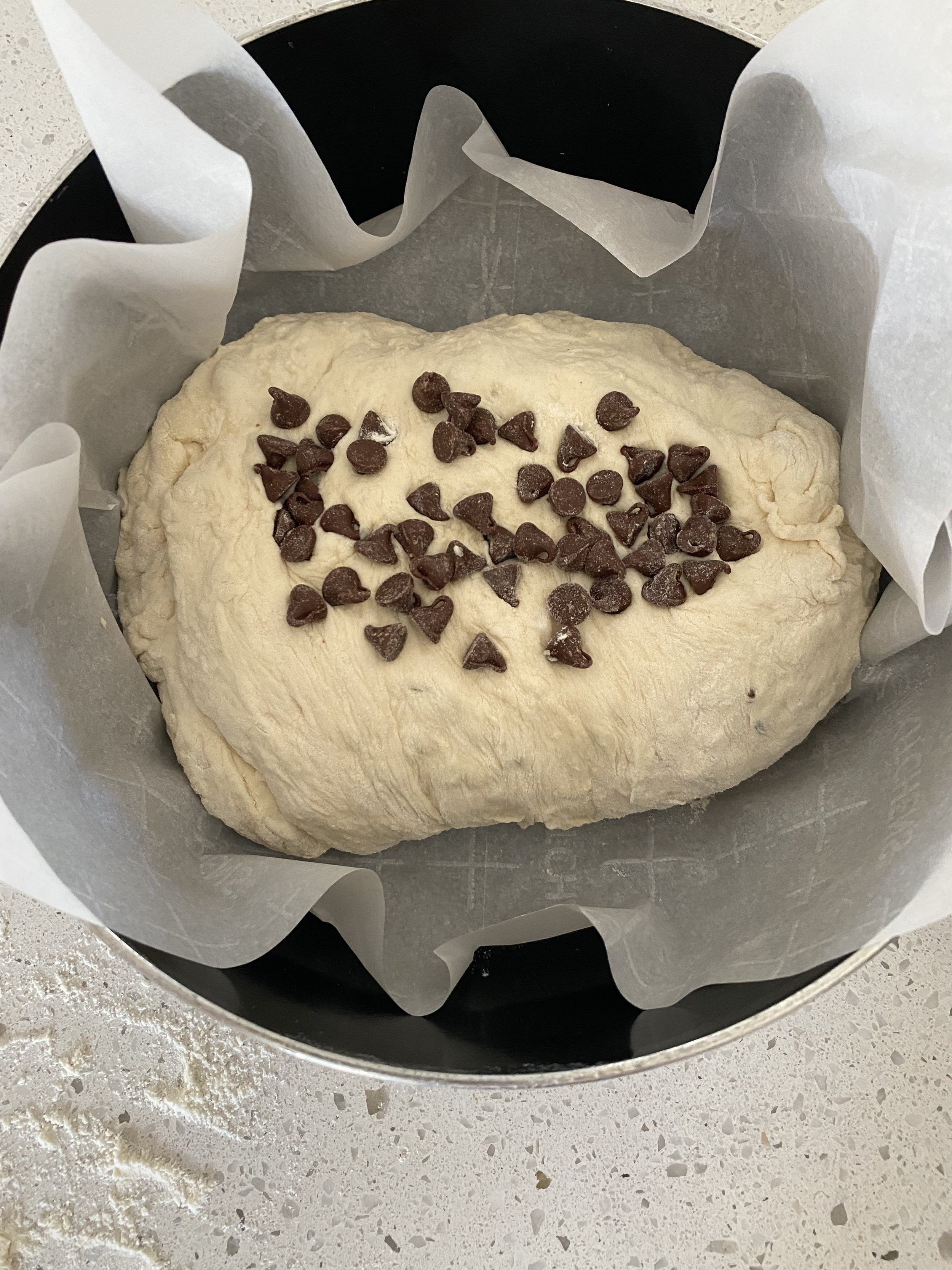 Use the handle of a wooden spoon to combine ingredients. Cover with a towel and place in sunlight for 2-3 hours to allow it to rise. Knead dough with flour gently (don’t over knead) and place on parchment paper in a dutch oven. Bake with lid on at 450 degrees for 30 minutes. Remove lid and bake for 10-12 more minutes. Remove and allow to cool on counter before slicing.